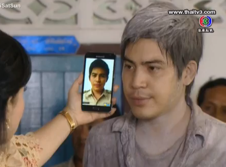 To determine the truth, the crowd follows Jin to the washbasin where he cleans out his face. Nai Umpur’s wife holds out a picture of the Palat Jin next to Jin’s face. Identical. She exclaims in happiness that he is indeed Jin- and asks him if he remembers Auntie Reudee, which Jin stoically says he remembers her from the get go. Ha.