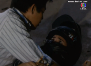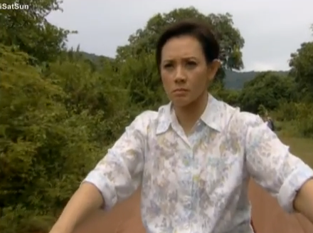 Our resident thug threatens (what gall!) Khun Palat not to meddle with her affairs, otherwise she won’t guarantee his safety. Khun Palat says he doesn’t like to meddle with a woman’s affair anyway, unless that woman does something illegal. He shoots it straight with her, that if she doesn’t want him to meddle, then she needs to stay out of illegal trouble.