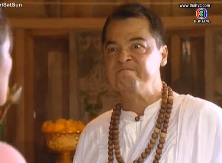 Phoo Yai questions whether Luang Taa could stand by and watch the town led by a bad person? His teachings for the townspeople would go down the drain. If that doesn’t work, Reurng tries a manipulation route. She says that she overhears Ai Wan talking smack about Luang Taa, that if his dad wasn’t truly great (and powerful) than a former thug (obviously Kong of a former life) wouldn’t have hightailed and ordained.