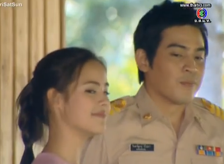 The culprits turn around and spots Khun Palat watching them. After his eye contact with Reurng, he just walks away. Reurng thanks her old schoolmate for helping her.