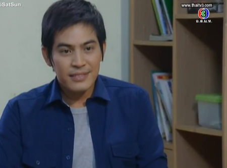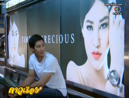 And Preuk, oh man, when he’s walking alone at night and smiling to himself like that, he’s so hot! He peers at the advertising banner- that he just noticed now- with Rose’s picture on it. If you blinked earlier at the scene where she falls on him, you can’t miss it this time when Preuk recalls that moment with a smile.