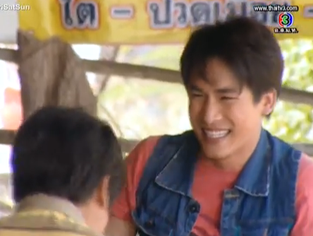 Wan and his gang swagger into a food booth like the thugs that they are, and Wan spanks the cook’s ass, thinking she’s a young lady. Heh, turns out, she’s a hot grannie! Wan looks like he wants to boil his hands. There is a purpose for his presence there, he is looking for Phoo Chuay Amnart (Assistant Amnart- probably assistant to the late Gamnan?) The aforementioned man looks and sounds creepy but he could barely lift his cup. He shares with them that no one in this town wants to be Phoo Yai, so this makes the trio happy with no competition for his daddy.