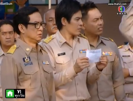 Reurng appears and says that running for Gamnan position is not like smelling roses. Heh. Luang Taa Kong steps up and the two challenge each other for many more rounds to come.