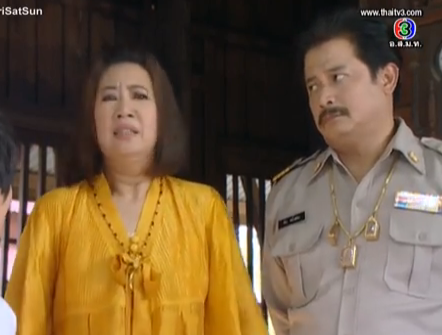 The following day Phoo Yai Pan and Momma Wieng tries to pay a visit to Phoo Yai Harn but to no avail, because the older man is sick again. Phoo Yai considers going back to Wong to ask for his vote but Momma Wieng interrupts that he is forbidden. She lifts her hubby’s shirt and sees the white markings. She steps back in shock, it has reached her husband! She thinks it will turn red next and starts bawling. Lol. The gang stares at her in confusion.