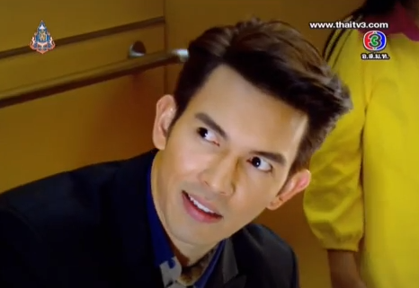 To rush away from the paparazzis, Dao decides to take the same elevator as Chai Jan. Just as he mutters that it’s never a lucky day when he sees her, the elevator suddenly stops. She tells him to blame it on the owner of the mall instead of her (not realizing that she’s staring at the owner in the face.)