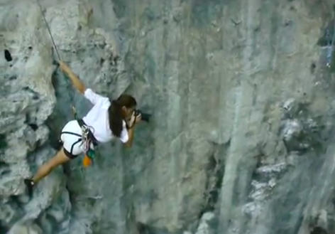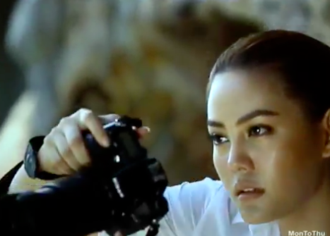 We open with Prakai Dao (Janie Thienphosuwan), a fashion photographer, whose name means sparkling star. She’s currently at a photo shoot set for the suntan spray company, where the models are glistened up and hanging by the rope as they rock climb. Our badass girl, Dao, like a trapeze artist, extends herself from the rock climbing apparatus to snap photos of the models. Her stance is equally as beautiful as the models’ poses. She narrates that a photographer will often times go above and beyond their call of duty. Indeed.