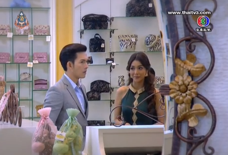 At the grand opening of a high end shop belonging to a distant cousin Khun Ying Nim, noble mom asks for her niece’s help in convincing Chai Jan to open his eyes to woman. She wants Nan to end up with him because she’s a good match and she’s persistent. Ha.