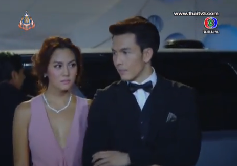 That night of the party and girlfriend reveal, Khun Chai Jan adorns Dao’s neck with a diamond necklace that could light up the whole city. They put their game faces on as he escorts her up the stairs, amidst paparazzi’s curiosity and rapid snapping of their photos.