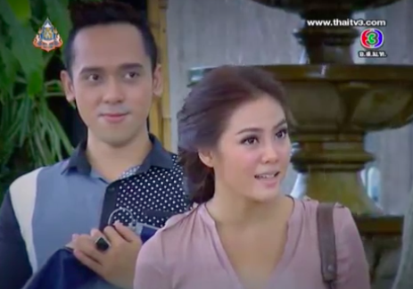 He chases after her, after the bite of salty pasta, and demands for an apology. She spats that he should leave Dao alone because she’s already taken, but Pongjan declares that Dao hasn’t said a word that she’s taken, only Ying Nim has. At this comment, she starts to dart her eyes away, unable to lie. Pongjan smells fish and decides to investigate. Something tells him that Dao and Khun Chai’s relationship is unusual.