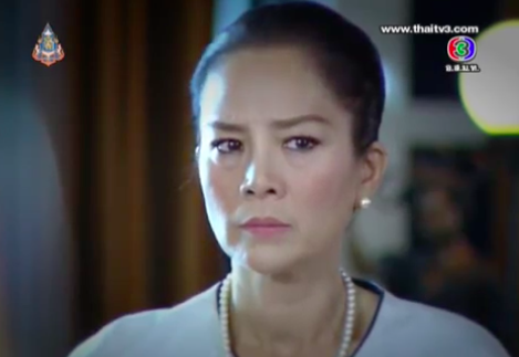 “Unfortunately I cannot,” Dao retorts, “If I don’t hear it from Khun Chai’s lips, I won’t leave him.” Speaking of the devil, Dao excuses herself to speak to Khunchai over the phone- while Nan pipes in that Dao is relentless as a girlfriend, can Mom imagine what she’ll be like if they ended up together? A look of uneasiness crosses Mom’s face.