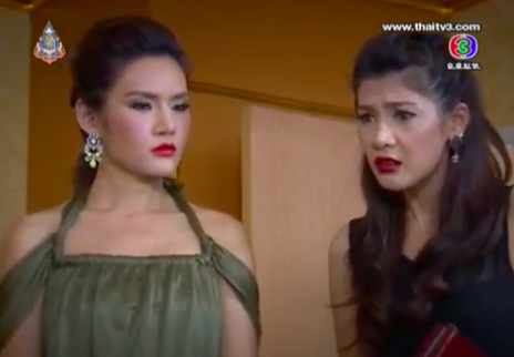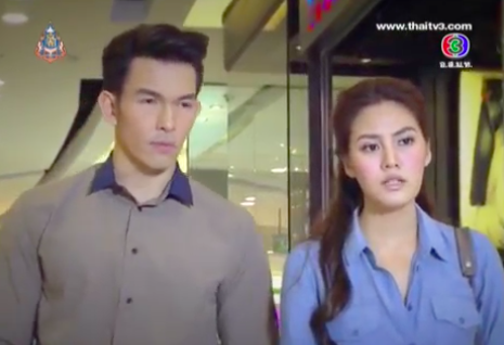 They spy Dao driving off and follow her, seeking retribution right at the mall, where Dao is to meet up with Khunchai. Their confrontation are on two entirely different pages, Dao thinks that Rathee has told Arn about Siwa’s cheating ways, while Arn sees red at the fact that Dao is continuing to pursue her man. Arn throws a fit like a little girl and stomps on Dao’s shopping bags. Ha. She announces to the crowd of shopping patrons that Dao is unstable and is sleeping with her husband. Dao deliciously punches both of them in the faces. Lol.
