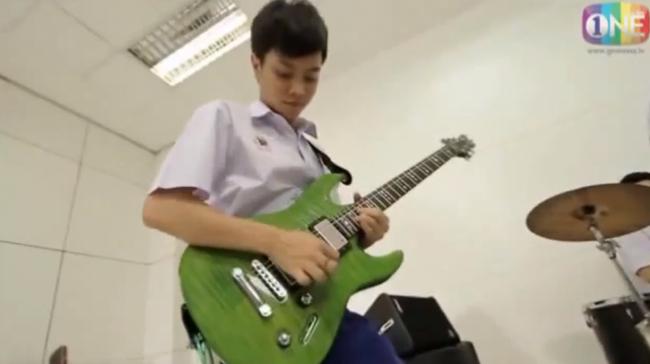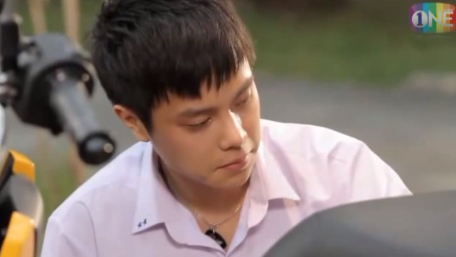 Tar arrives at the audition, mentally prepared to becoming the band’s guitarist. But much to his chagrin, another classman “Pae” has also received an invitation. And the competition is on! Pae and Tar take turn rocking the electric guitar to a cover of ‘Wat Jai’ (Measuring one’s willingness) by Silly Fools, as the lead singer belts out the tune. Both appear equally skilled.