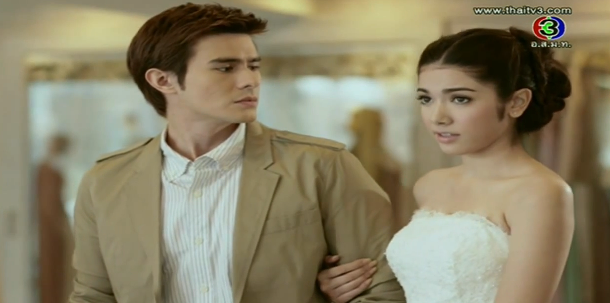Cut to Bangkok, at a bridal shop, Wa meets up with Witu. The man is confused, because he did not arrange to meet with her. Wa sort of smiles because they are at a bridal shop and the two haven’t been able to see each other as frequently. Little did she know that another woman snags his arm and tells her that she had been the one to send her a message from Witu’s phone. She wanted to let her know that she’s marrying Witu. Wa could only stare at them.