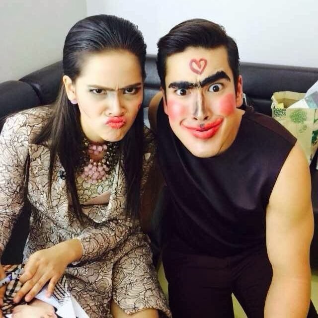 Prepare yourself to watch Nadech being the ‘professor’ where he puts his makeup artist specialty skills on Yaya, and vice versa. This is such a cute segment! He must spend some time or have gotten to know gay makeup artists as he puts on their persona, it’s hilarious! The hosts want to know why he only puts makeup on Yaya and no one else, and Nadech explains in his persona that she’s already beautiful but he wants to make her even more pretty. Lol. His concept for Yaya today is as beautiful as a horse hee. Yaya’s concept is Frida Kahlo, a great way to get back at him for making her look like a monkey. The two are hilarious. Their hearts are so aligned that they each drew a heart on each other’s face as their artists ‘signature.’