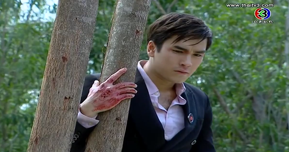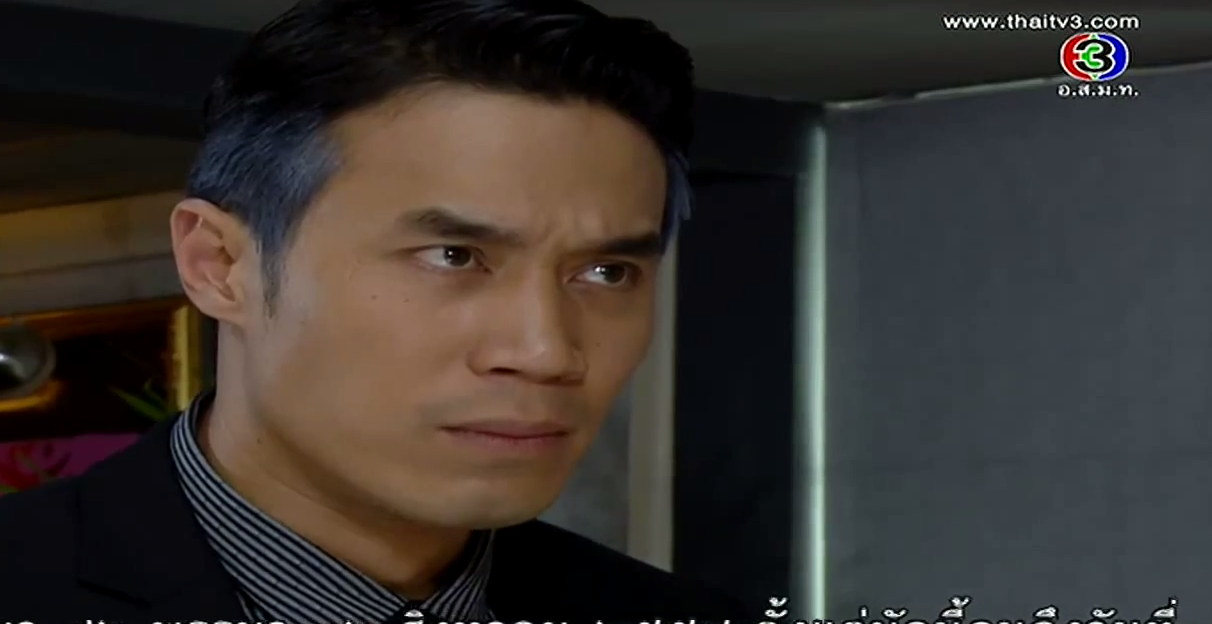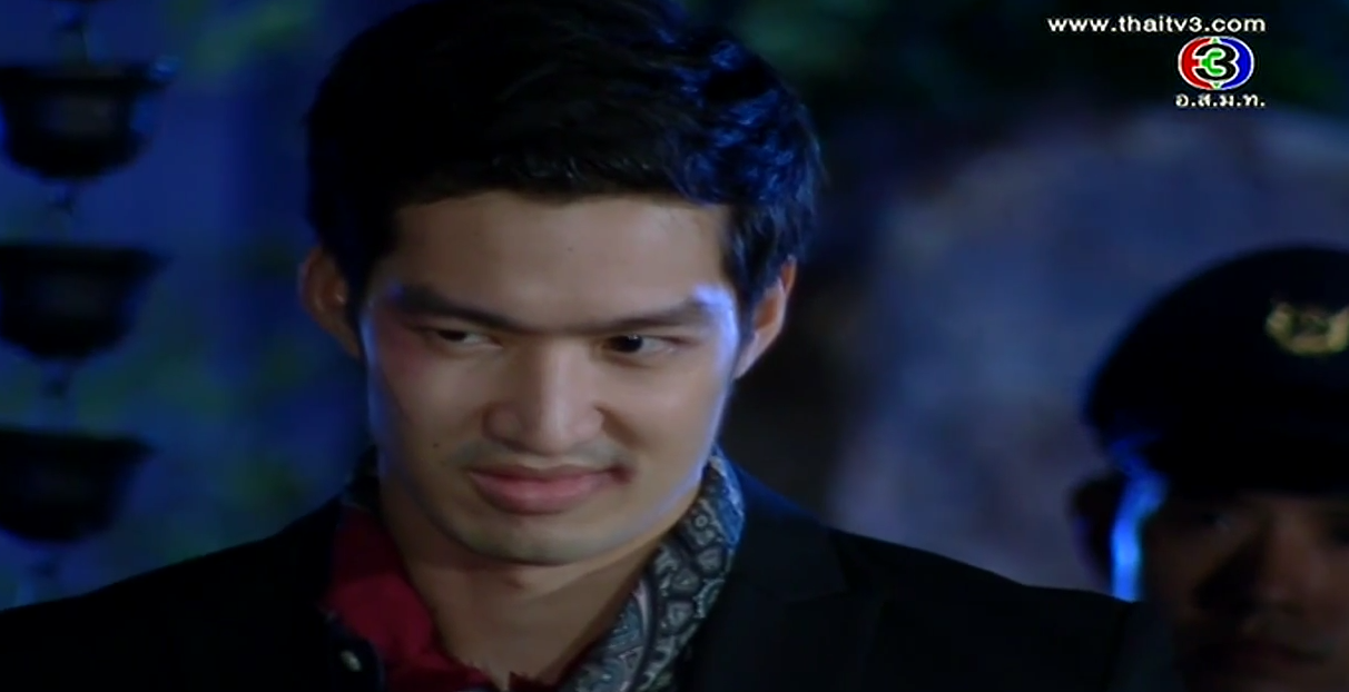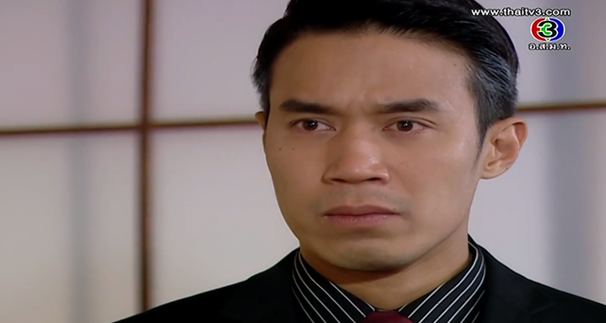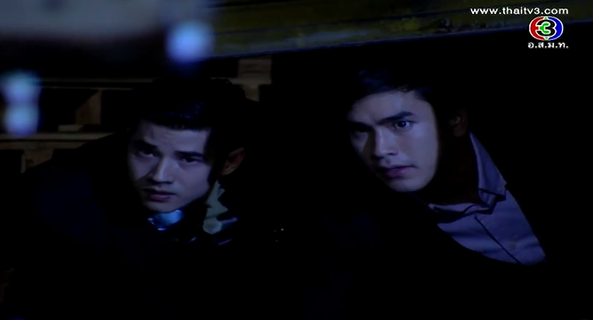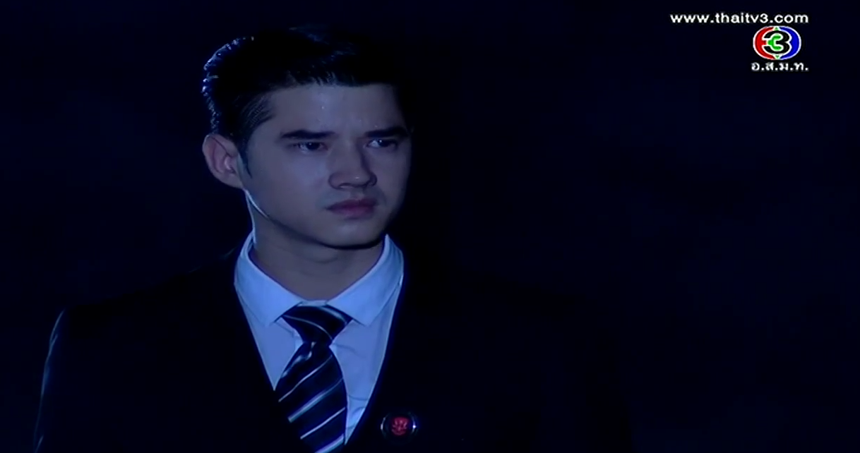 In the corner of the pier, Satoshi shows his face. Oh snap, he’s alive! We always knew in lakorn world, if the body isn’t found, most likely he’s not dead yet! He flashes back to Kenichi’s final comment and he vows that Misawa and Onitsuka will have to cooperate to kill Kenichi. Satoshi stumbles towards an incoming car until the second car stops for him. Ironically, he sees Onitsuka clan’s marking, and he orders them to take him to Sorel. But along the way, the car stops as Kenichi approaches him. Oh, he’s a goner for sure now. We even have a body to prove it. Misawa stares at his son’s corpse and vows that whoever killed his son will die a horrible death. Aiko shouts that Takeshi will never kill her brother.
