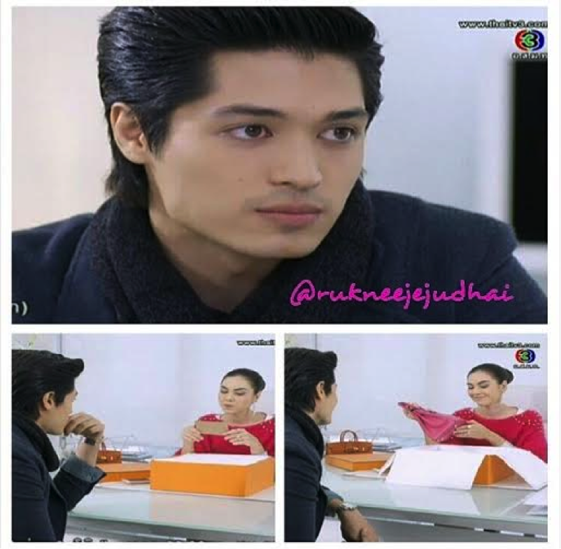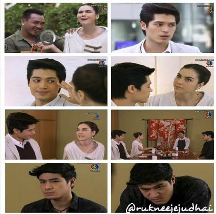After bumping into Nut at a coffee shop, Lookjun gets harassed by some thugs on her way out. Nut shows up to help her. Lookjun brings Nut back to the office to help apply some medication on the injuries he sustained while helping her. Paul shows up to her office as well and walks in on her as she is applying the medication on Nut. Lookjun asked if he was there to have lunch with her. Lookjun then suggested that they all go have lunch together. Lookjun wanted to treat Nut out to lunch for helping her. Paul looks on with jealousy as Nut sucks up to Lookjun. As Nut was paying off the men he hired to harass Lookjun earlier, he complained that they went too far and socked him too hard so they get a pay cut. The man responded and said that Nut used to liked their service and was satisfied last time they did that with Ingorn’s incident. (Now we know how he and Ingorn hooked up, he used the same plan).