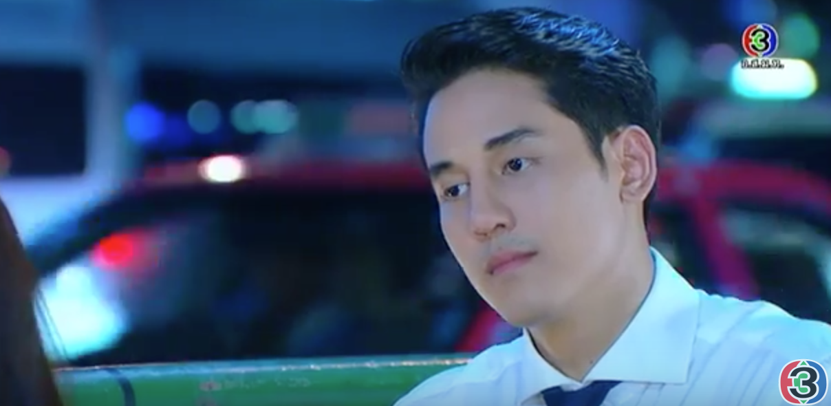 Mirantee spots Chayakorn moping alone in the hallway. His mom thanks her for her hard work today and suggests that Chayakorn take her back to her car at the hotel, but Mirantee mentions she doesn’t want to interrupt Chayakorn who is in the process of making a music video. Haha. Mirantee tells him he doesn’t need to act that way because even though she likes him, she’s not asking him to like her back. They go to a noodle vendor for food since Mirantee had no time to eat at the party, and she reassures him that she’s not the type to get her hopes up because she knows it’s impossible between them. But he on the other hand, should stop thinking about what Nuth and Wat are doing on their wedding night. Irritated, Chayakorn stuffs her mouth with food.
