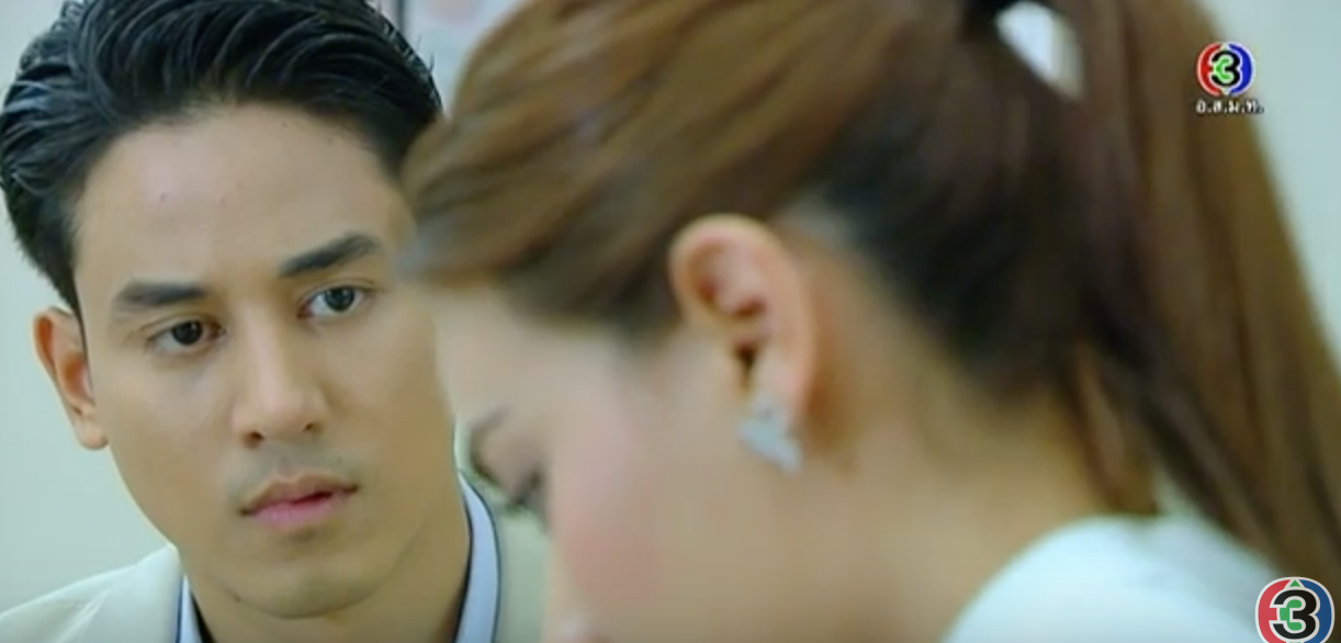 Satawat joins Anusnaiya in her dressing room and exclaims that the bra looks great on her, knowing that Soam is in the room next door. But as he covers Anusaniya’s mouth, the two end up staring intently at each other. Soam barges in the room and tells them they can continue lying to people but she won’t believe it for a minute because Nuth will never get to be intimate with the doctor.