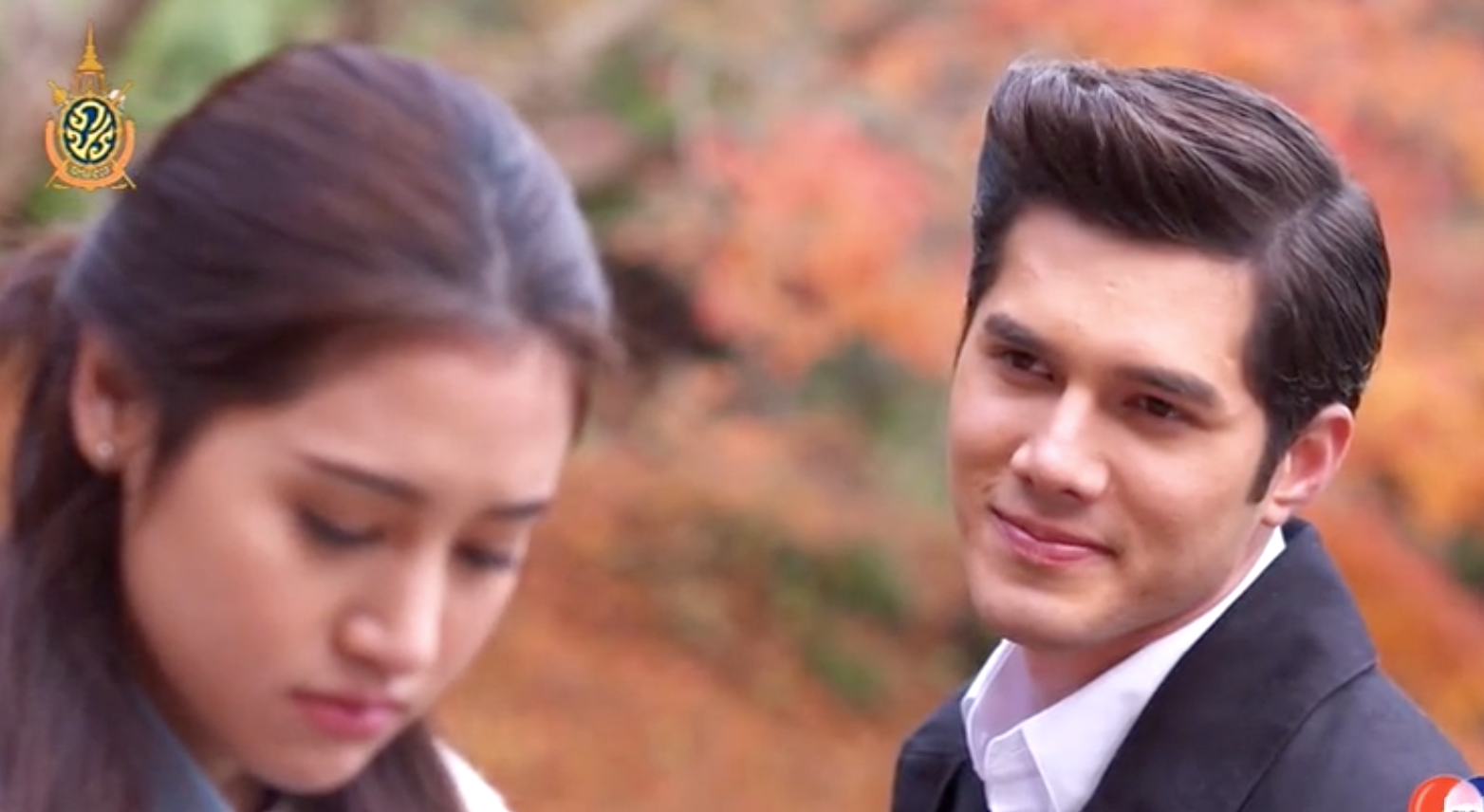 Fahsai does not appear in better spirits being in Japan though. A call from her mom only serves to remind her that she is far from being in love like her parents. She does her mom a favor by purchasing facial cream at the nearby supermarket, which is where she has a run in with a tall, attractive, but shifty man. He keeps staring at her, as if he is seeing someone he knows very well, but shocked that she’s alive. With a suit jacket to cover his wound, Daniel keeps after her.