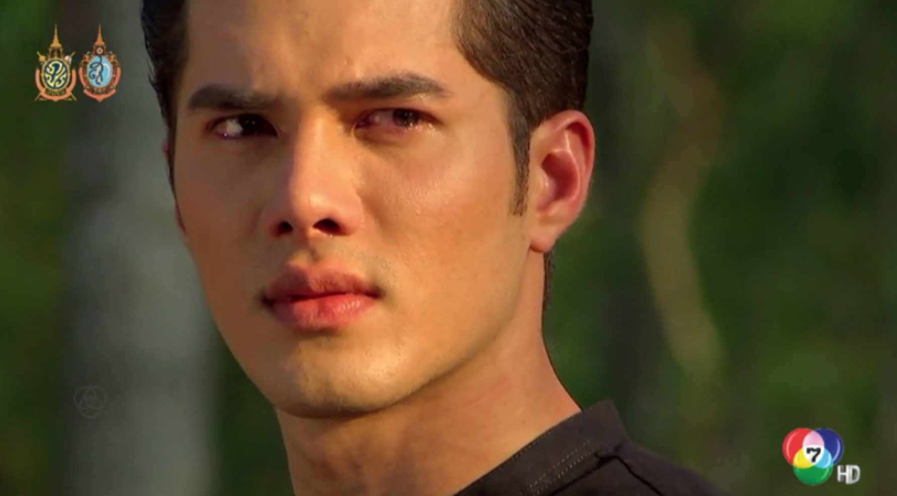 He takes her by the shoulders and tells her that from this moment on, they are lovers and no matter what happens, they can’t have secrets. Daniel continues that they have to tell each other everything. She agrees. Omg. TELL HIM. Daniel tucks her into his side and rests his chin on her head. Fahsai tears up from the lie she just told.