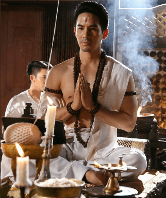 Phor Daed dresses in his religious garb (and I die, I mean, isn’t he HOT or what?) and they commence the chanting. The maids stay by Katesurang’s side, with Pah Prik assuring her that Phor Daed is trying to save her.