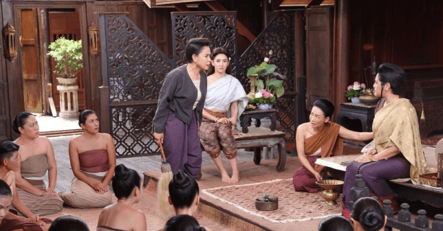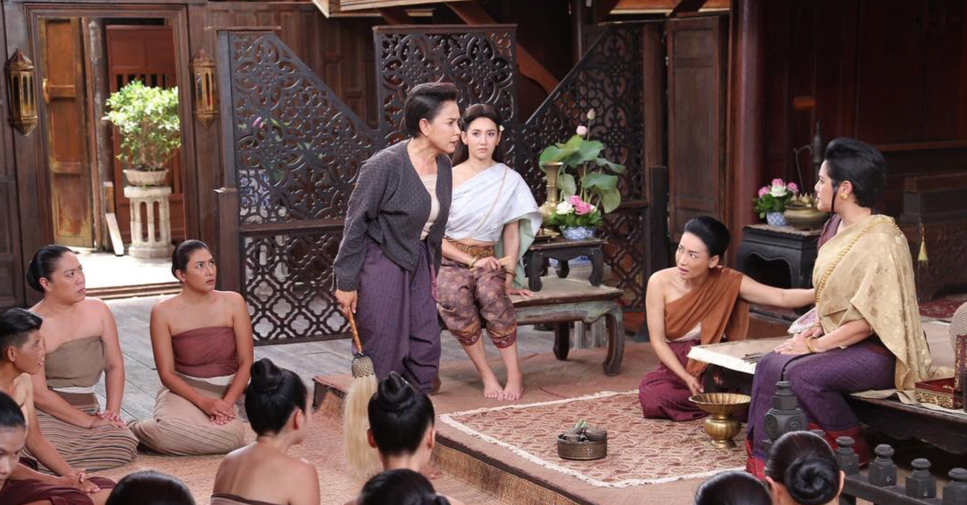 The housewife lessons continue as Khun Ying Jampa prepares Katesurang for her wifey duties. Kate asks Khun Ying if she could pay a visit to Mae Ying Janwat. Khun Ying allows it, with a warning that she ought not to cause trouble anywhere else. Little did Khun Ying know that Katesurang would visit Mae Ying everyday to try and convince her to do something that’s against everything that Mae Ying believes in. Katesurang tells Mae Ying that Khun Reung can barely work or eat due to his love for her, and that if she loves him too, she ought to do something about convincing her mom to accept him. Mae Ying acknowledges that she loves Khun Reung, but that she would not lie or deceive her mother in the process. Katesurang tells her that it’s a mere white lie, and that it will all be worth it because she can marry Khun Reung, unless of course she is ok marrying some old, ugly fart. Lol. When mom tells her that some rich guy asked for her hand in marriage, Mae Ying has no choice but to lie in bed and feign an illness. She repeats fervently that she wants to die – ha, this is what she was against? A couple of days later Khun Reung approaches mom with some silk (and we’ve never seen Mae Ying Janwat get out of bed so fast).