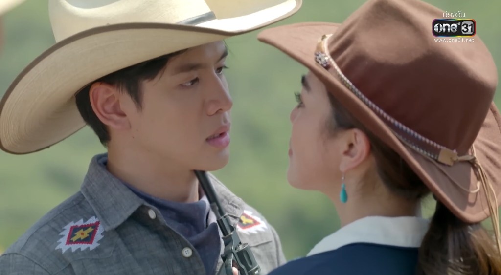 Chompoo on the other hand is raised in a humble village on the range. I love how the villagers come together to protect their own, and Chompoo has become one of theirs. When referring every female child as Chompoo no longer works, the village head, Bunthong, decides to name her “Salika” which is the name of a lullaby that the general had sung before he was killed. Dad Bunthong raised Salika as his own and she grew up on the range, adept at all things cowgirls, but also retained her classy upbringing. Prang is especially gorgeous in this show, but the greatest strength is in the dialogues and her logical character.