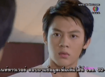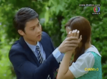 Aroon came to apologize to Non at her house. Non says that he has never been like this before and wonders what had happened to him. Aroon could only say that it was his own lack of self-confidence and fear that he could not make her happy. It makes him sad every time he hears of her speaking that way (that she’s jealous of rich people..) Non tells him that she has chosen him and that means she will never change her mind, no matter what. They make up and hug. Nut watches from the door with happiness. She bothers Dekcha again (through their connecting string and tin can lol) and shares the news with him. He tells her that he could care less, lol, and that she should go find a boyfriend.