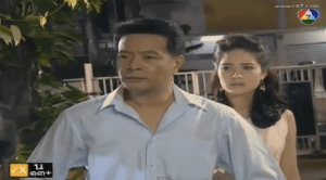 Kongkaew receives a call from Yoting’s mom that Whitney is at a club, they arrive there and find her dancing on the stage. Khun Amnui tries to yank her out of the club. When she refuses, he is fed up. He grabs a glass of water and tosses it on her. He tells her that he just saw her mother in a despicable condition and to see her like that too was too much. So you think to toss water on your daughter in front of everyone is really going to help things? Whitney tells him to leave her alone but her father is insistent about bringing her home. She says that she’s been like this for a long time and she will never change. She storms out and her father stumbles back from anxiety.