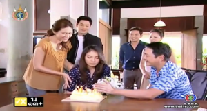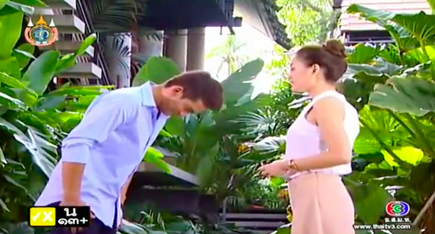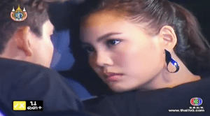 Anyway, as they chatter, Siwat and Tee appears on the television where the media asks them of their relationship status. Siwat answers the way any celebrity would: I want to focus on my work. While Tee tells everyone that she’s a female, she “couldn’t” possibly reply to the question, but instead, she would shamelessly hang on to his arm and let her action speak for itself.