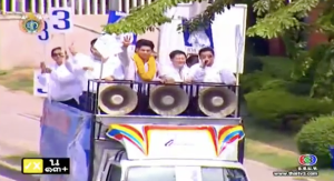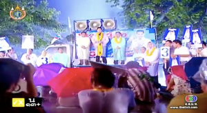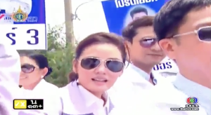 In Tamrong’s office, he doesn’t agree to make their relationship known to the public yet. He reminds Nay of their biggest goal and that they are not yet there. Since they are half way there, he is still striving for the public to see the strength and validity of their party. Siwat objects and is frustrated by Tee’s involvement in this. Tamrong says that she is only helping their efforts because she’s related to the former Prime Minister who supports their party. Siwat asks if he and Nay could legalize their marriage quietly. His father tells him that he is being watched like a hawk, that will definitely not go unnoticed. Tamrong tells Nay to hold on a bit longer. Nay steels herself and agrees.
