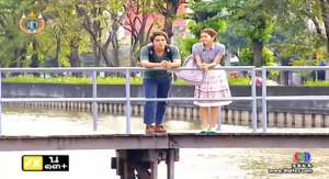 Another shot of Nay and Siwat sitting on a bench in Paris. Nay sees an older couple walking by and asks Siwat that if they get to that age, would they present a concerned-about-each-other image like that? He grasps her hand and kisses her knuckles. He tells her that he will love her until his last breath. But that doesn’t seem to give her true confidence, she says to him that he is a guy who has everything so it is only natural that other girls would want him. Especially when they return to Thailand and he’s the Prime Minister, how could she trust him? Siwat consoles her with, “I’ve chosen my mate. No matter if I encounter other women, they would only be acquaintances, not my lover, like you. I promise that we will be very happy together.”
