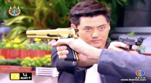 The bad guys are pressuring each other and turning on each other. Ponglert says to his lover, Chulongorn to not face him when her duty isn’t done- she needed to sway Tamrong with her bedroom finesse. Ittiharn appears and bitches at her in front of his father, insulting her. He tells her that she can’t backstab them because they are tough tigers. Ponglert makes her continue her charade with Tamrong, while Chulongorn stared daggers at Ittiharn.